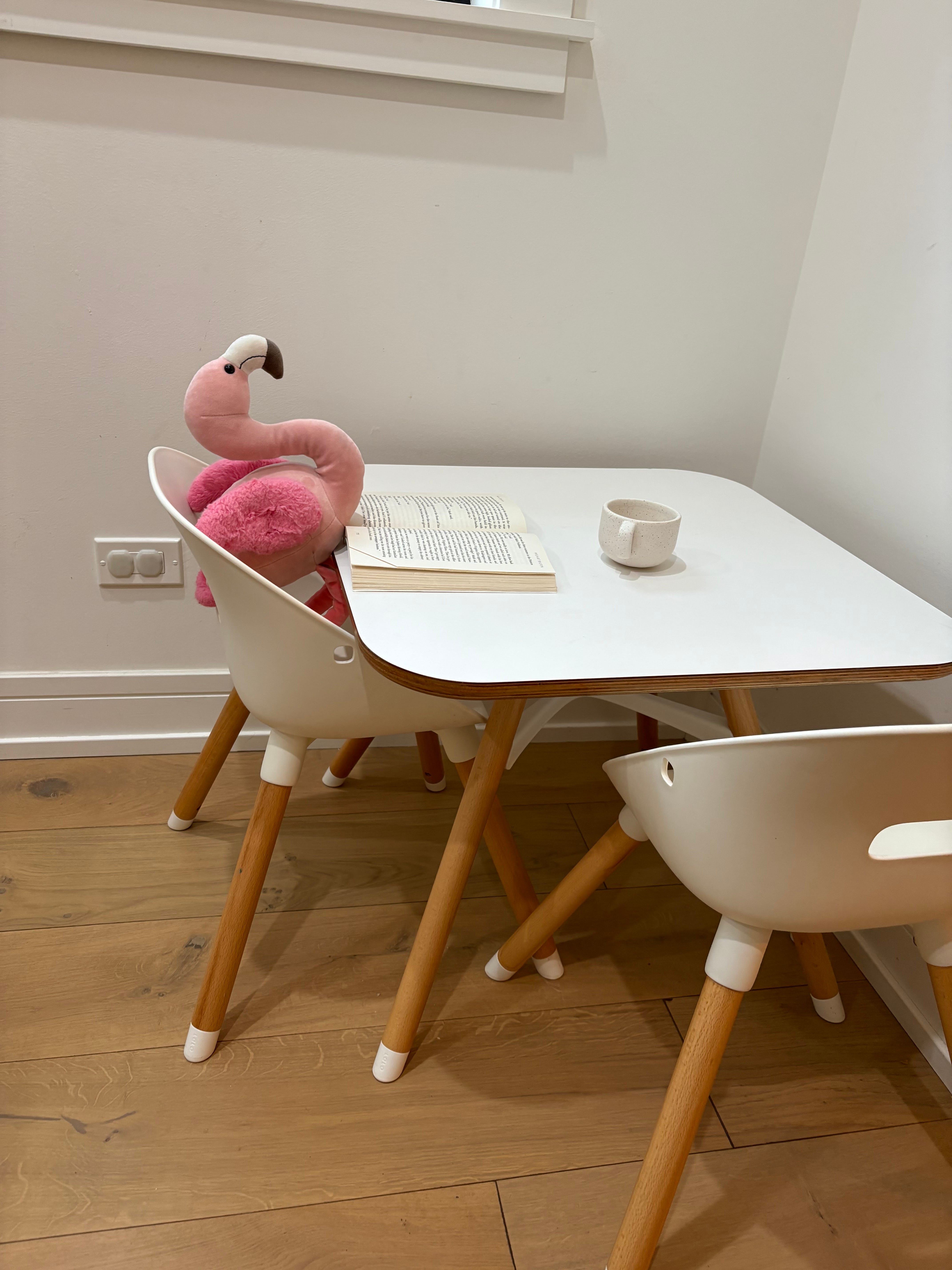 Upon her arrival, I quickly learned that my two-year-old is, predictably, a rather rude host. Though initially excited for Ms. Pinky’s visit, he tired of her almost immediately, leaving me as her main companion. Moms, you know how this goes.